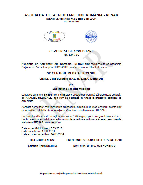 Centru Medical KOS s.r.l. Laborator analize medicale